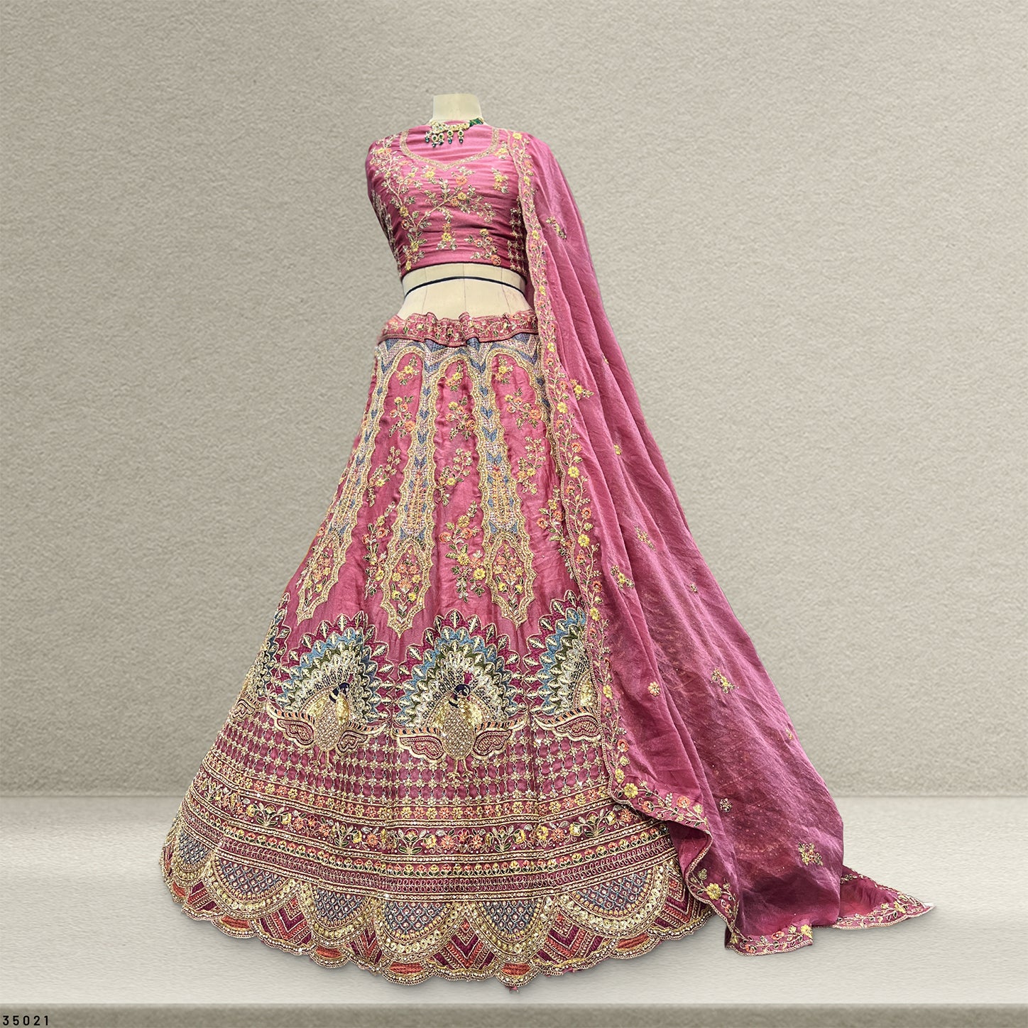 Padmini - Tissue Silk Zari & Resham Work Partywear Pink Lehenga
