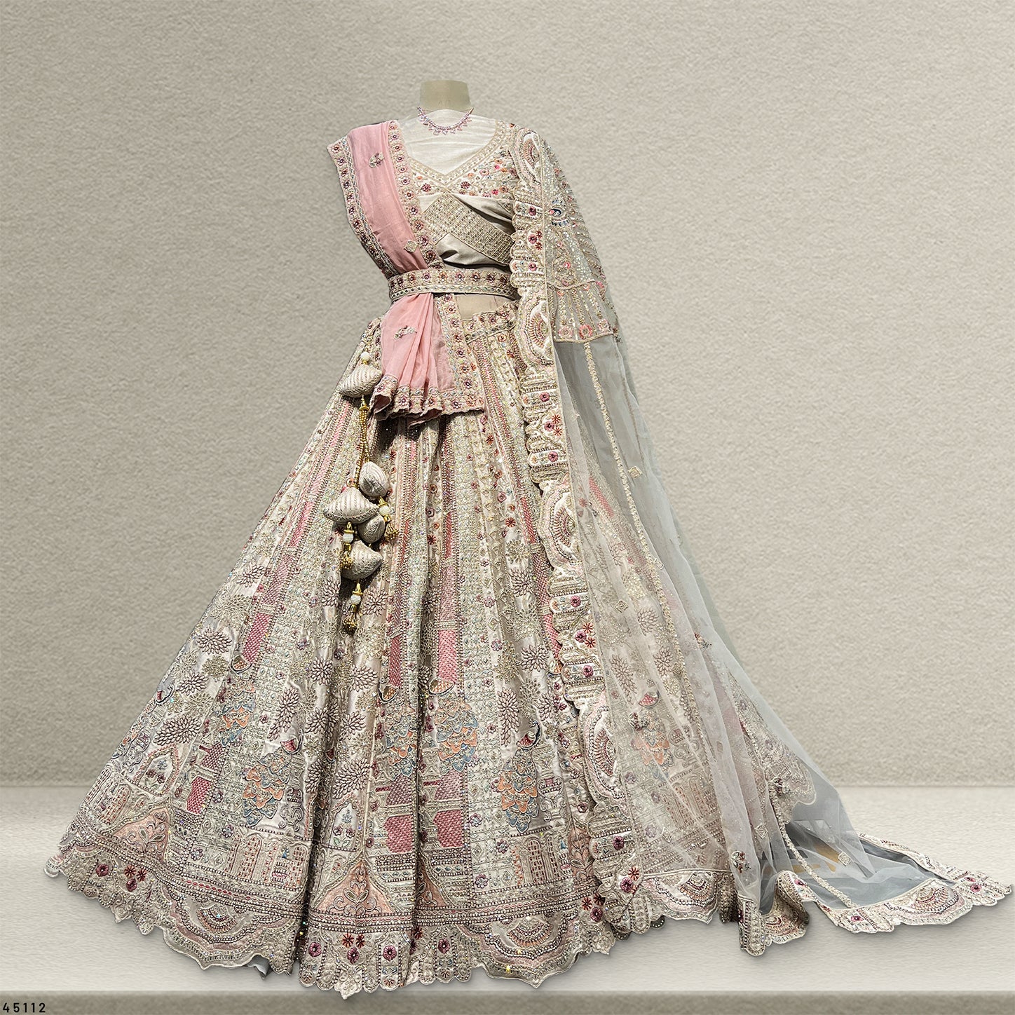 Rosé - Double Dupatta Raw Silk Ivory Bridal Lehenga