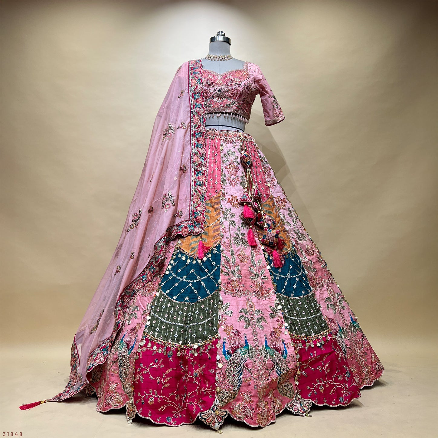 Shringaar: Kodi Handwork Carnival Lehenga with Ready-To-Wear Blouse