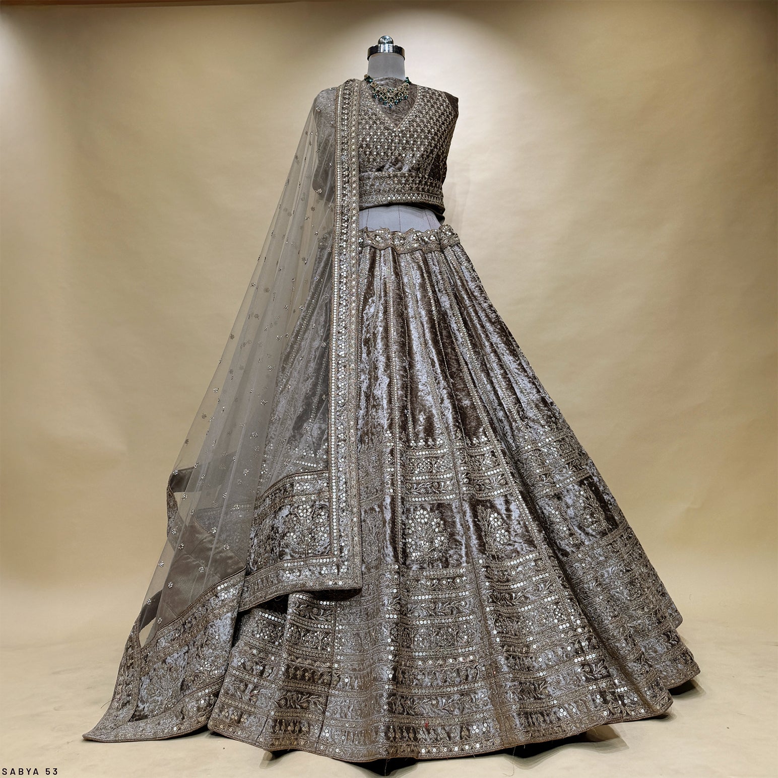 The Damsel - Designer Velvet Lehenga is a true masterpiece, crafted with precision and attention to detail. The materials used are carefully chosen and combined to create a rich and royal effect, making you stand out in any occasion.