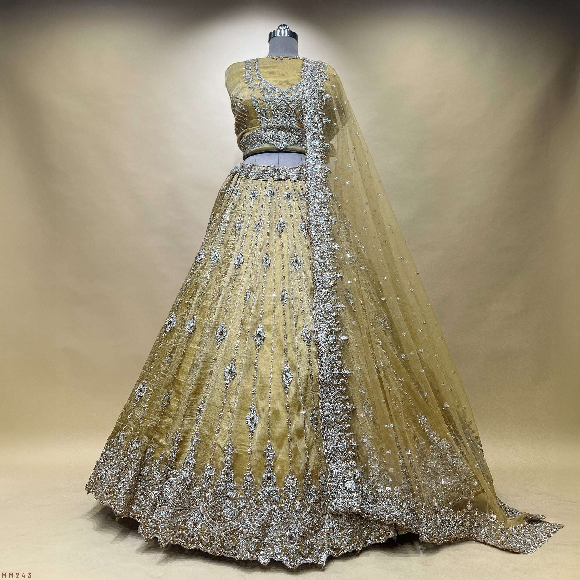 Damsel - Topaz Stone Setting Tissue Handwork Lehenga - Somber Yellow