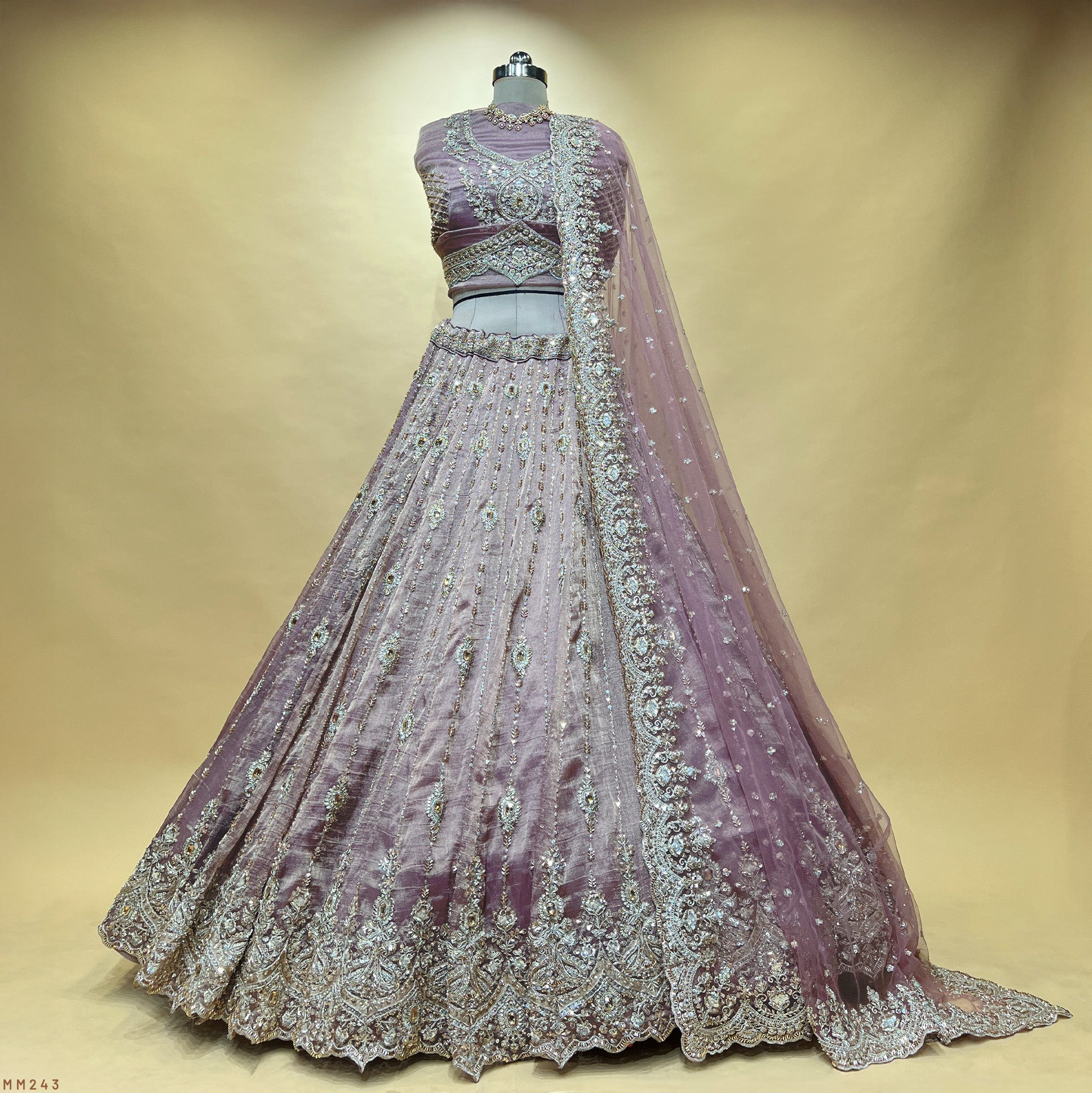 Damsel - Topaz Stone Setting Tissue Handwork Lehenga - Dreamy Lilac