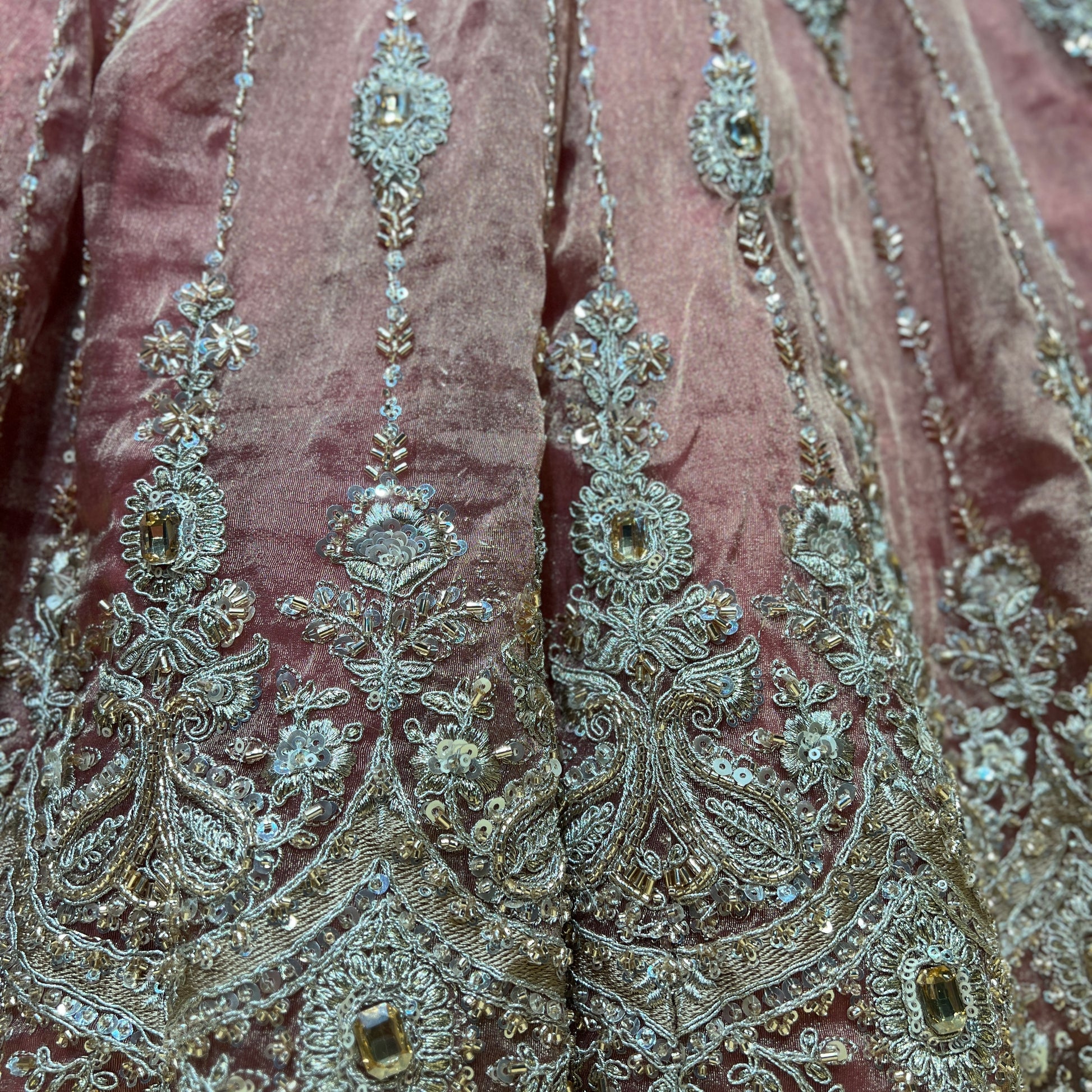 Damsel - Topaz Stone Setting Tissue Handwork Lehenga - Muted Salmon