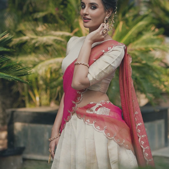 Doli - Elegant Golden Zari Weaving Work Off White Lehenga Choli Set