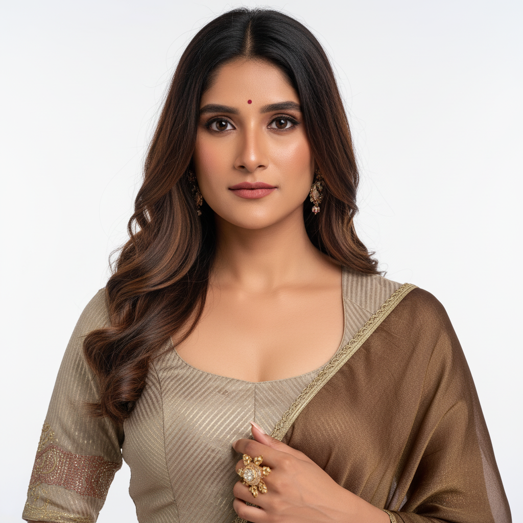 The lehenga bottom is pre-stitched in a free size, and additional blouse fabric is provided for you to customize.
