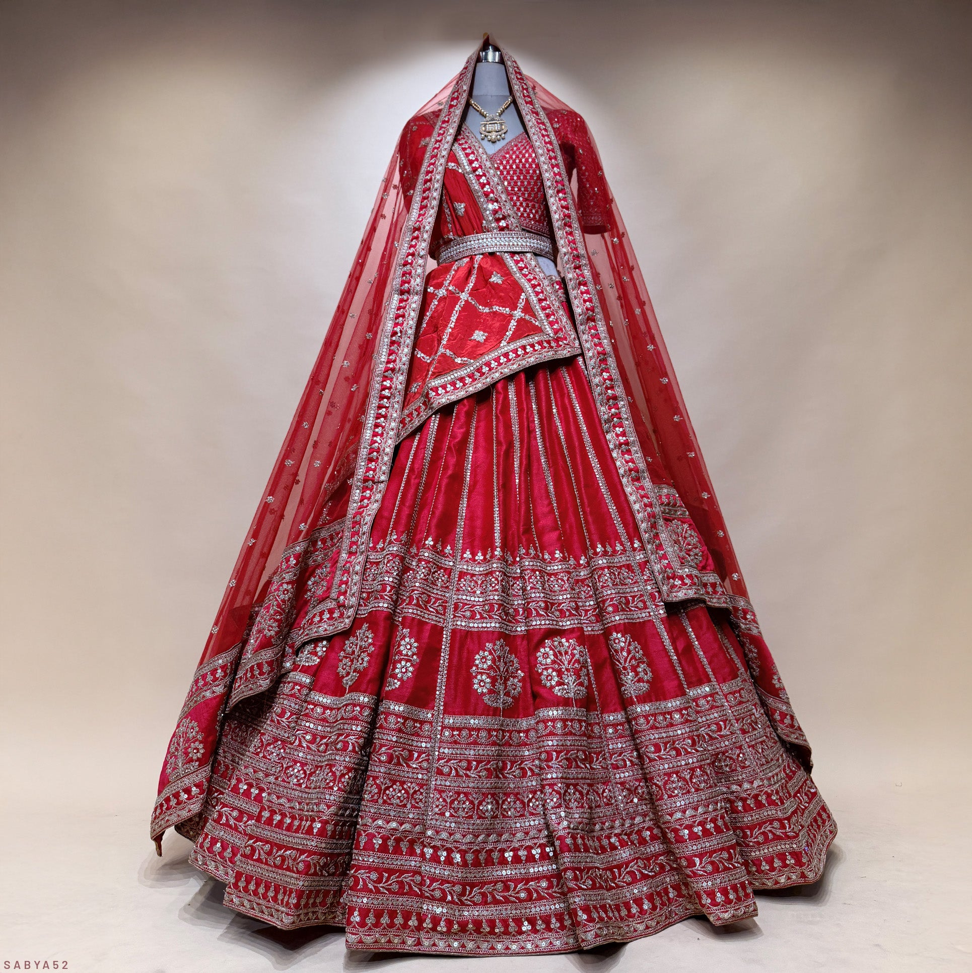Shop now and elevate your wedding style with our Sabya-inspired Dulhan in Red Lehenga Elegance. Limited stock available, so hurry and make it yours today!