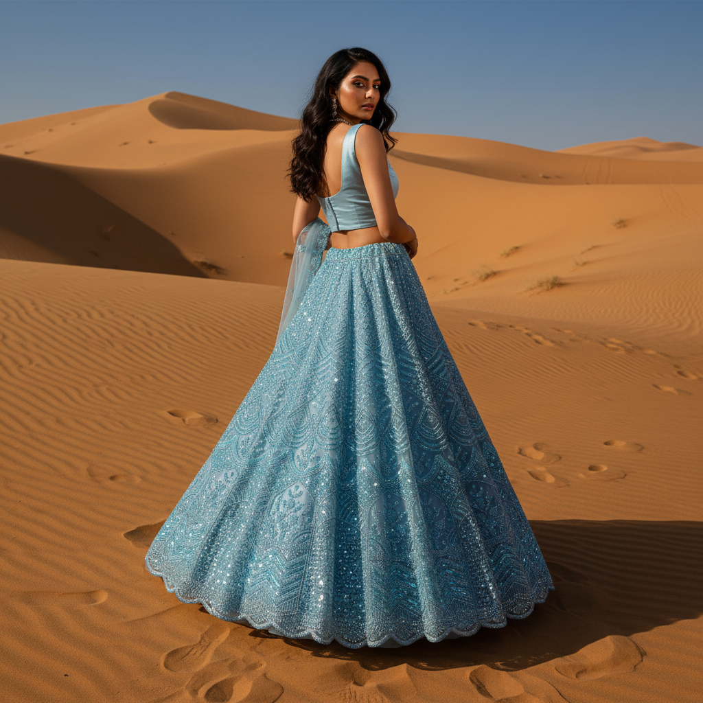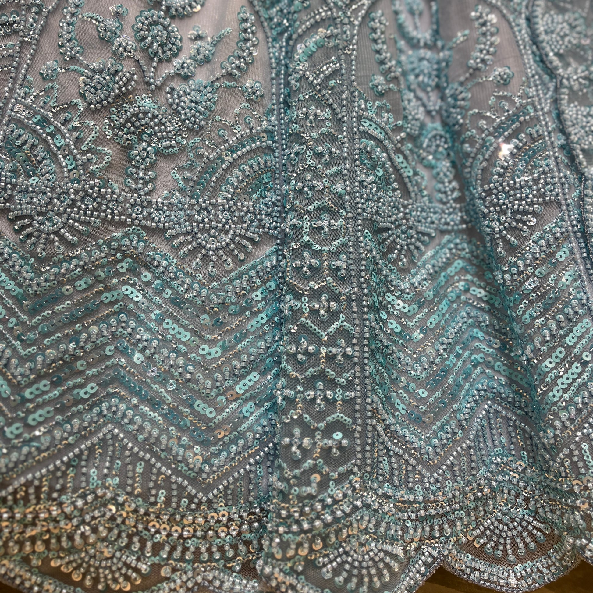 Jazzagals - Beads & Pearls Handwork Powder Blue Partywear Lehenga