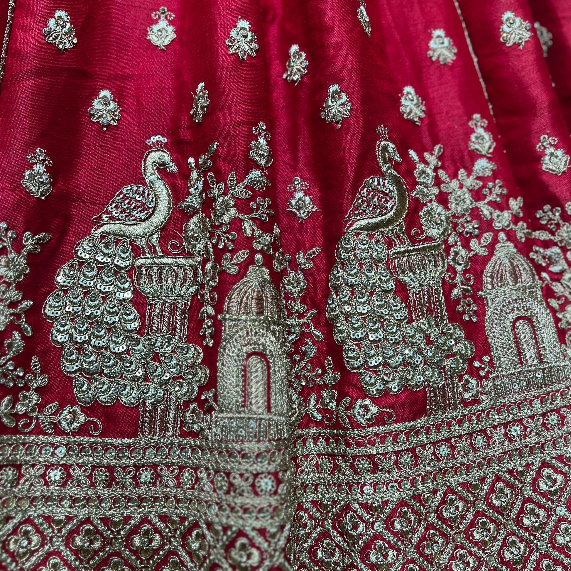 Step into your fairytale moment with our 40-Kali Red Bridal Lehenga, a masterpiece of minimal elegance and royal grandeur. Crafted with 40 precisely tailored kalis, this lehenga offers a breathtaking 12-meter flair that’s made for the perfect bridal twirl.